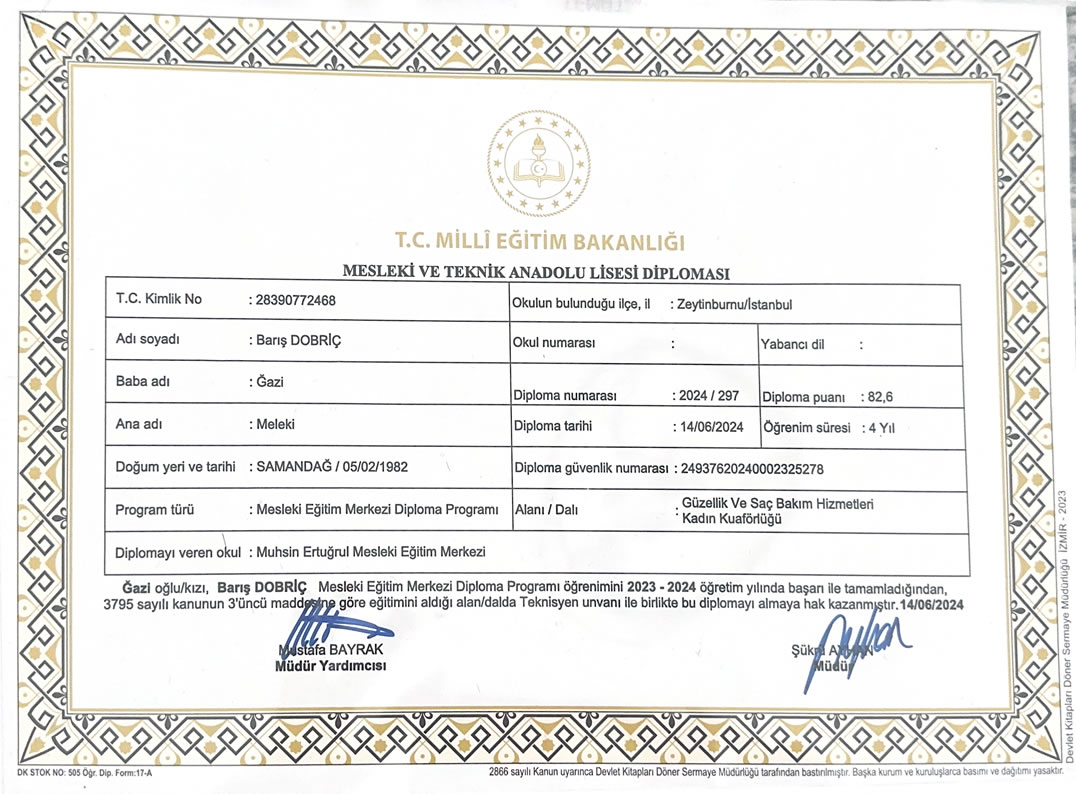 Barış Dobriç, 1995 yılından bu yana kuaförlük alanında aktif olarak çalışan, saç tasarımı, saç kaynak ve uzatma, keratin bakım, saç renklendirme ve kıvırcık saç teknikleri konusunda uzmanlaşmış profesyonel kuaför. Türkiye’nin önde gelen eğitim kurumlarından diplomalara sahip, kendi salonunu kurmuş ve usta öğretici unvanıyla çok sayıda genç kuaförün yetişmesine katkıda bulunmuş bir akademisyen. Ulusal yarışmalarda jüri üyeliği yapmış, basın, televizyon ve dergilerde başarılarıyla yer almış, Türkiye Kuaförler Kurumu tarafından denetmenlik yetkisi verilmiş bir sektör lideridir.